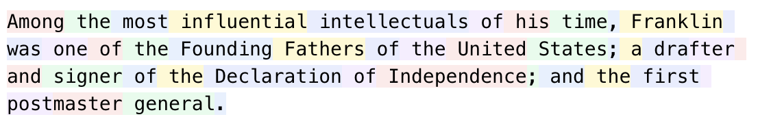 在另一个例子中,大多数单词本身就是标记,但“drafter”被分解为“dra”和“fter”,而“postmaster”被分解为“post”和“master”。